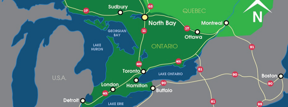 North Bay is within a day's drive to more than 100 million consumers. To reach our destination, you have the choice of six border crossings such as New York City, Detroit, Boston and Chicago.
